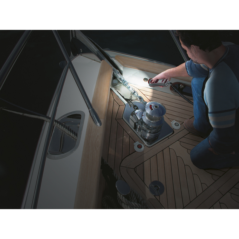 Pulsantiera contacatena con display LCD retroilluminato grafico e torcia LED integrati.Indicazioni sul display in 5 lingue. Funzione di discesa automatica, allarme in salita e blocco tasti. Gestione del salpa ancora con caduta libera automatica, utilizzabile anche in operazioni di tonneggio. Visualizzazione della velocità di movimento della catena, della misura di catena calata in metri o piedi e della tensione di alimentazione. Orologio e calendario. Interfaccia CAN BUS per il trasferimento dati. Stagna IP67. Completa di sensore contametri.