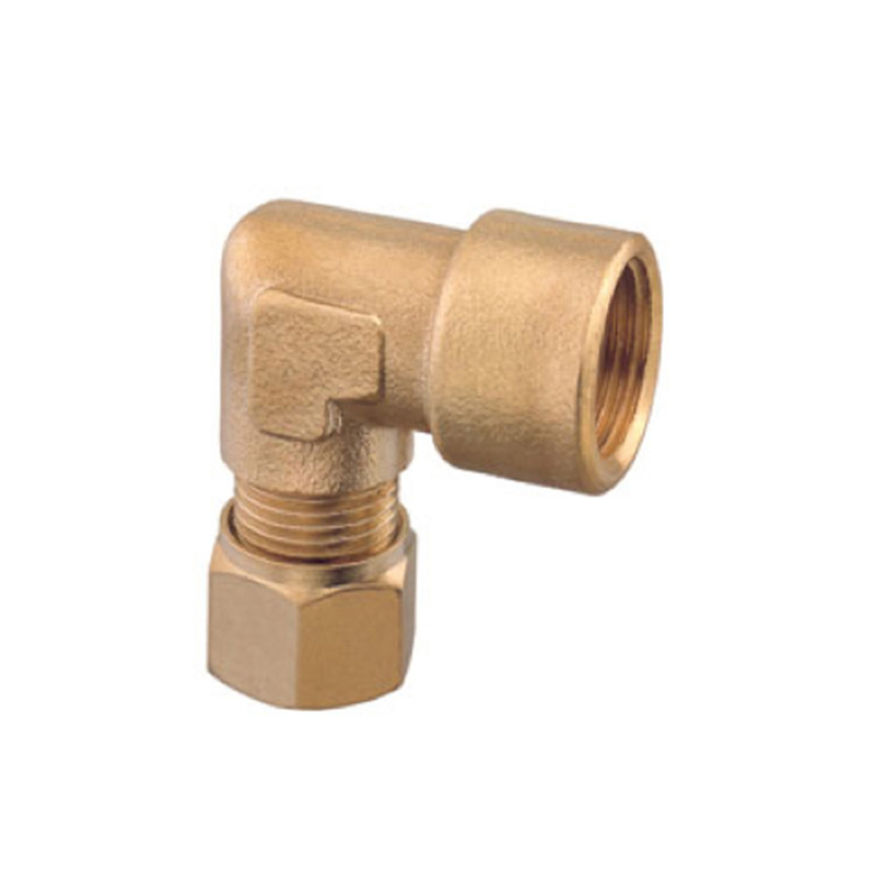 Raccordo in ottone, femmina curvo a 90°con ogiva.