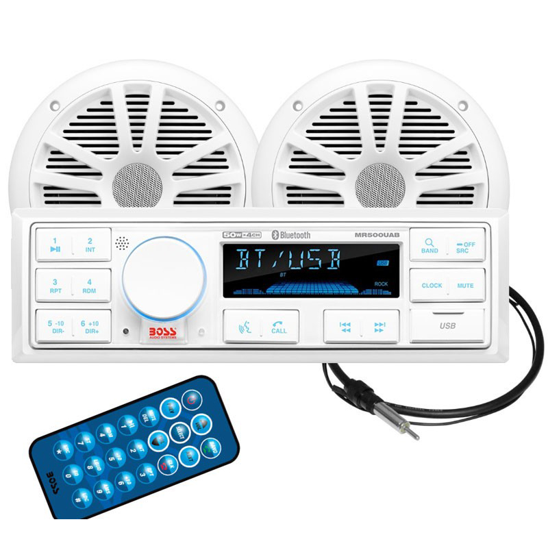 Package che comprende lo stereo da cruscotto MR500UAB (art. 5553426) e una coppia di speaker MR6W e l’antenna FM MRANT10. Stereo da cruscotto con display da 5” touchscreen, radio AM/FM sintetizzata. Dotato di tasto che consente di collegarti via bluetooth ed interloquire con l’assistente vocale digitale (DVA) che hai selezionato sul tuo smartphone. Porta USB sul frontalino dietro sportellino di protezione anche per ricarica fino a 1 Amp. Ingresso AUX sul frontalino (dietro un gommino di protezione). 2 uscite preamp, una frontale l’altra posteriore.