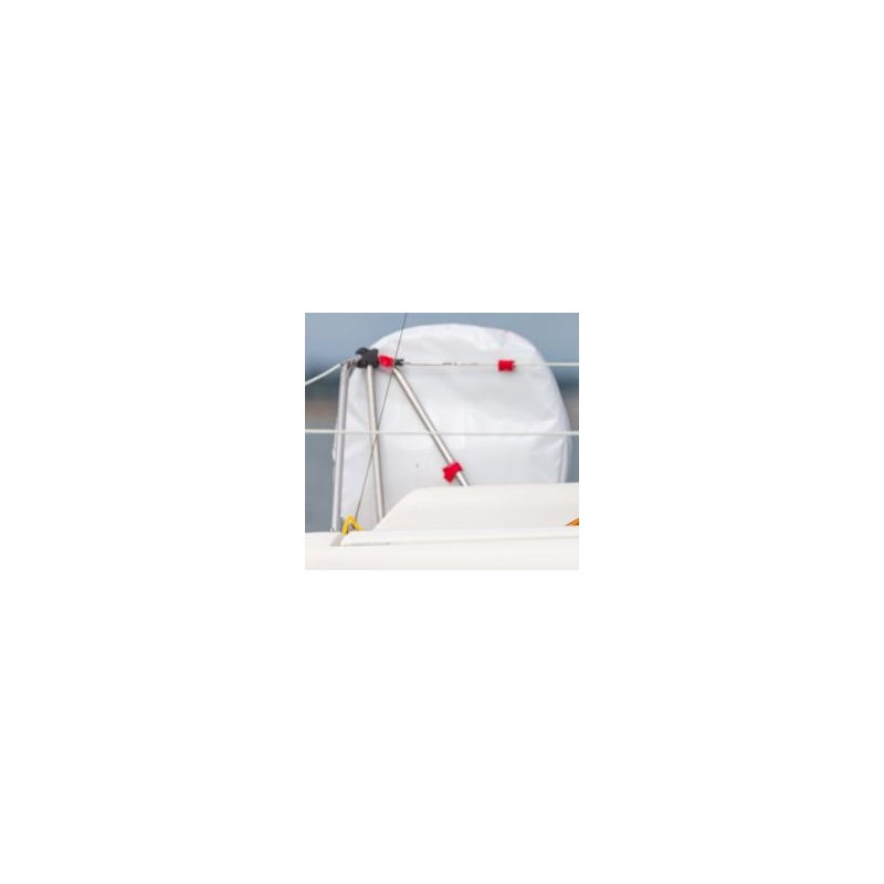 Salvagente a ferro di cavallo per il recupero di un uomo in mare, pronto all’uso, completo di contenitore in tela resistente ai raggi UV con agganci per il pulpito e mt 40 di sagola galleggiante gialla in polietilene ø mm. 7,5.