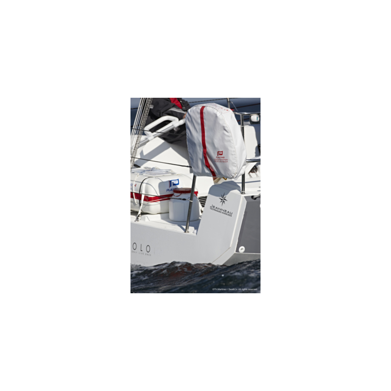 Salvagente a ferro di cavallo per il recupero di un uomo in mare, pronto all’uso, completo di contenitore in tela resistente ai raggi UV con agganci per il pulpito e mt 40 di sagola galleggiante gialla in polietilene ø mm. 7,5.