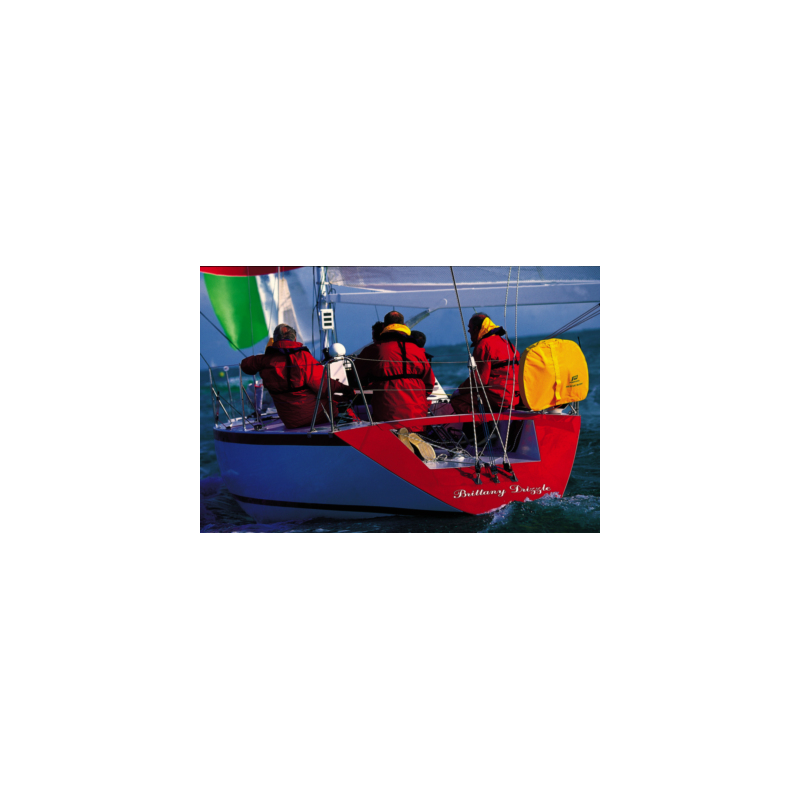 Salvagente a ferro di cavallo per il recupero di un uomo in mare, pronto all’uso, completo di contenitore in tela resistente ai raggi UV con agganci per il pulpito e mt 40 di sagola galleggiante gialla in polietilene ø mm. 7,5.