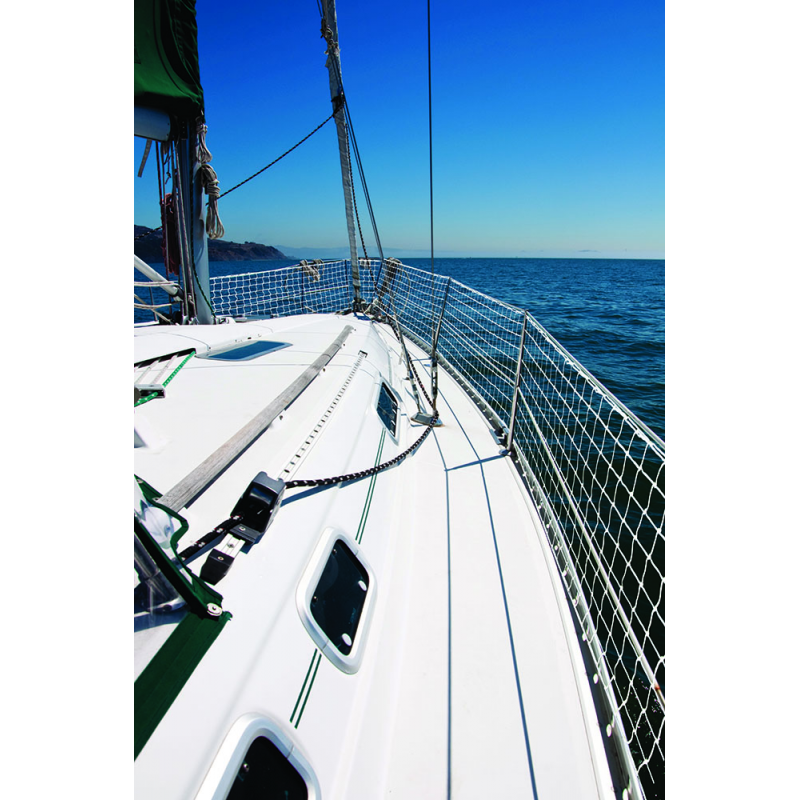 Rete di protezione per imbarcazioni, adatta ad essere fissata alla battagliola, al pulpito o come portaoggetti. Tessuta con treccia di nylon, alta tenacità. Annodata a mano.