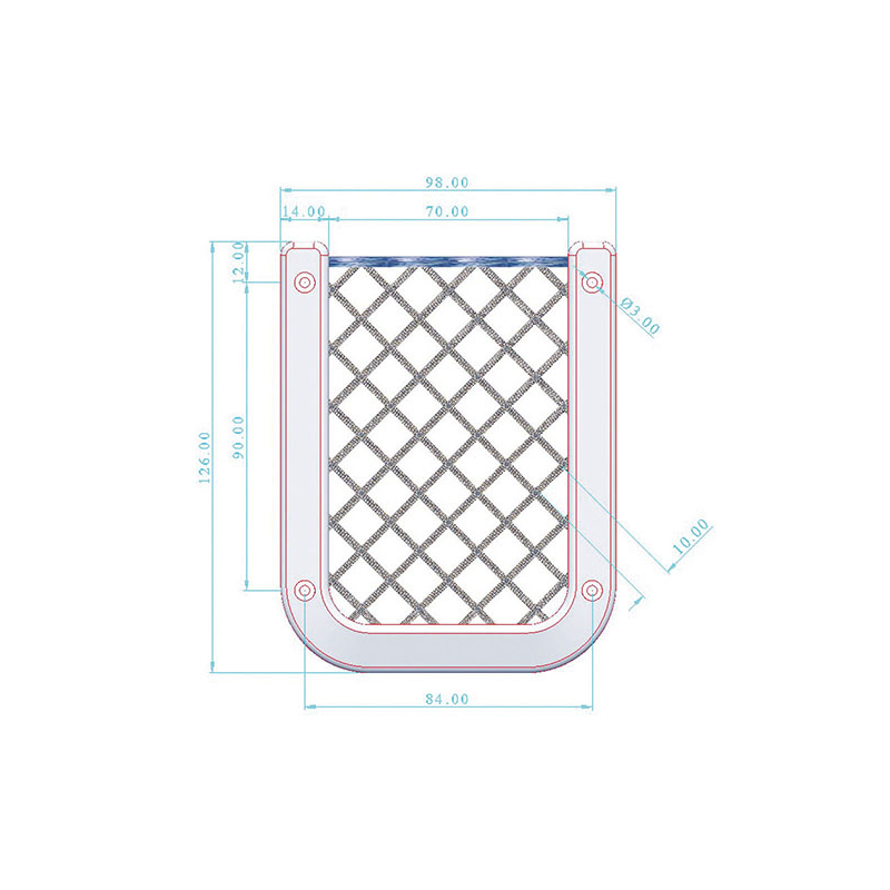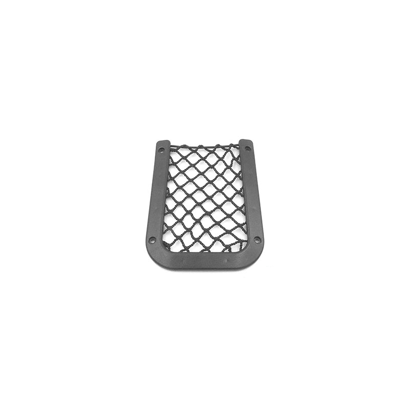 Rete portaoggetti con filetto superiore in treccia elastica, fissaggio con viti.