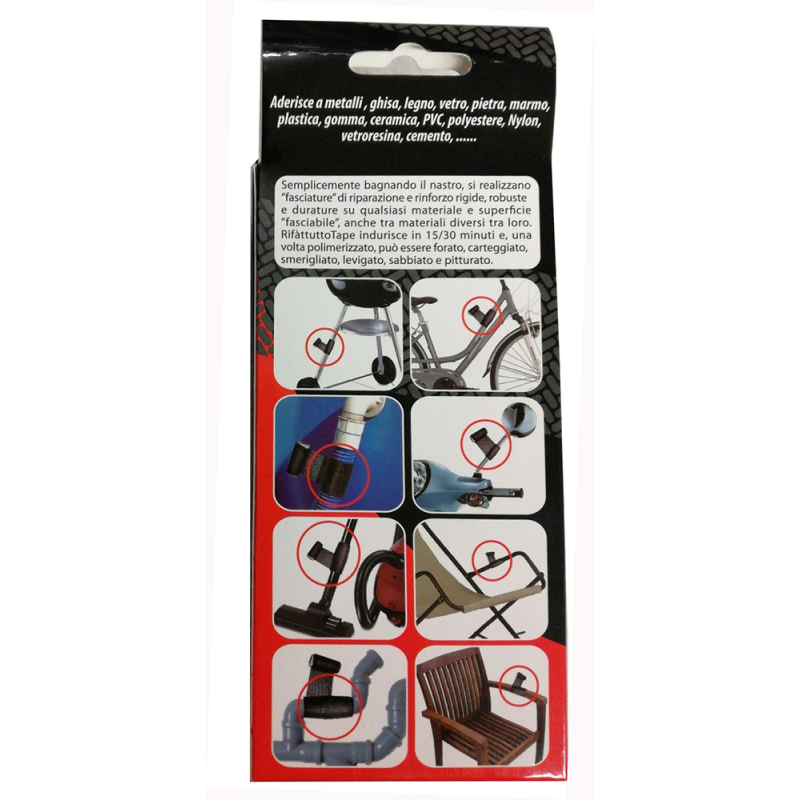 Nastro in tessuto adesivo di fibra di vetro imbevuto di resina poliuretanica che indurisce al contatto con l’acqua. Ideale per riparazioni rigide e strutturali di emergenza o definitive su metalli, ghisa, legno, vetro, pietra, marmo, plastica, gomma, ceramica, PVC, polyestere, Nylon, vetroresina, cemento. Resistente fino a temperature vicine ai 150°. La fasciatura diventa rigida dopo dieci minuti dall’applicazione e raggiunge l’indurimento strutturale in 24 ore. Una volta indurito può essere carteggiato, levigato o verniciato.