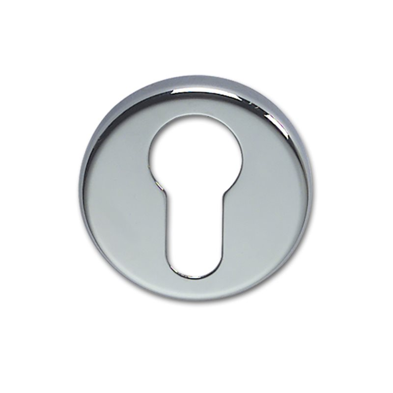 Rosetta completa di bocchetta in polipropilene per permettere il montaggio senza viti esterne con foro per serratura Yale, in ottone cromato.