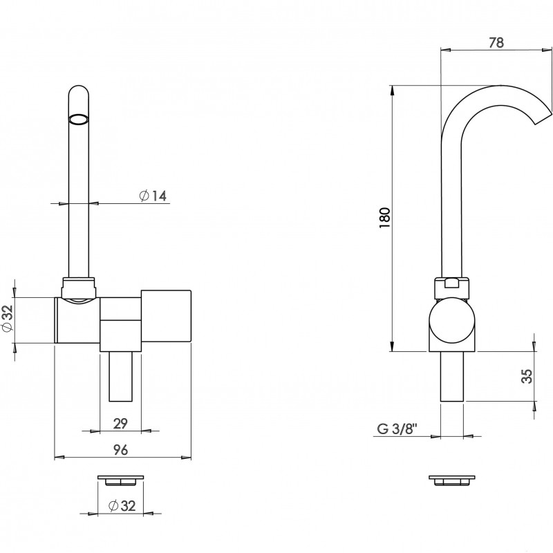 Rubinetto in ottone cromato, con canna bassa abbattibile, acqua fredda. Attacco maschio 3/8”.
