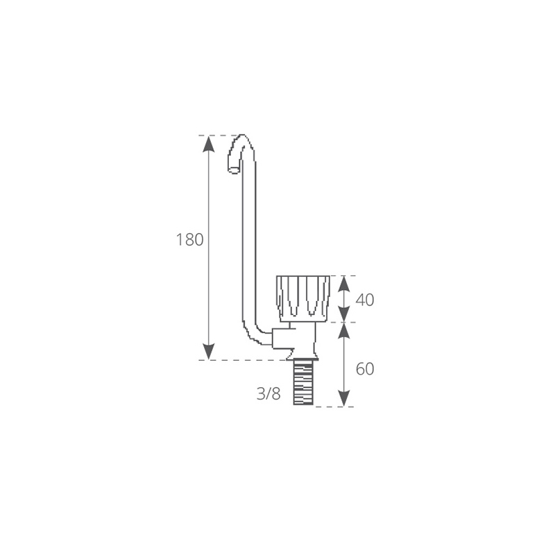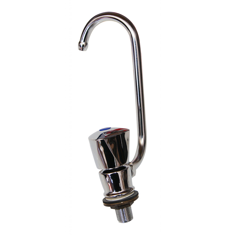 Rubinetto in ottone cromato, comando a destra, canna abbattibile.