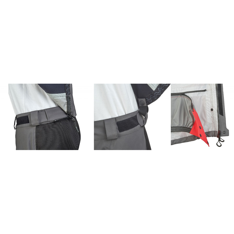Salopette composta da pantalone, corpetto e fascia scaldaschiena rimovibili che consentono così di adattare immediatamente il tuo abbigliamento alle condizioni di bordo.