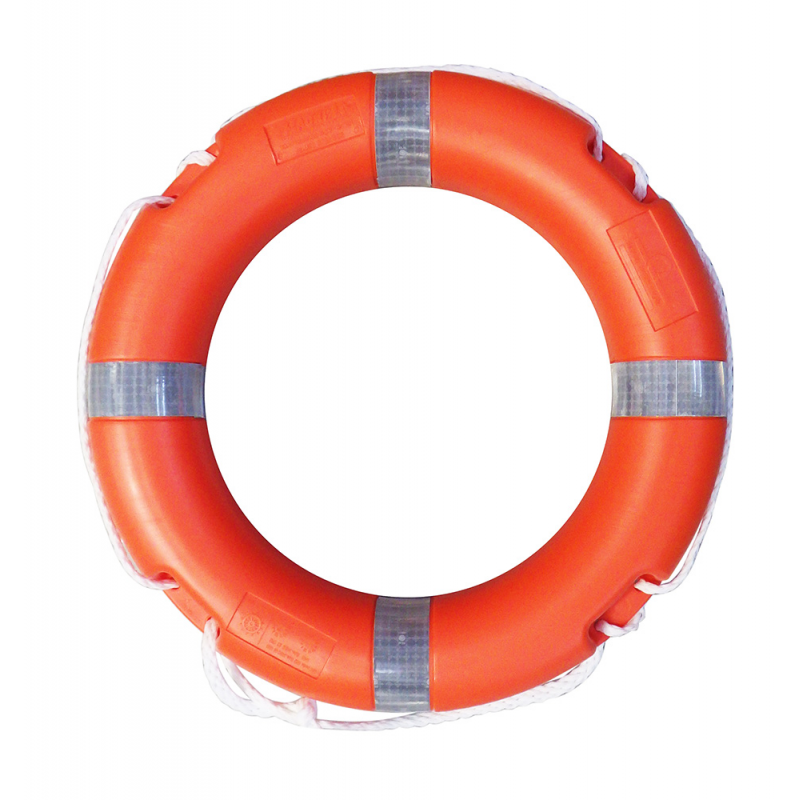 Salvagente anulare R.I.Na. (0474) n. CCE 8999/2 approvato SOLAS 74/83-M.E.D.96/98-DM n.385. MED 2014/90/EU, IMO Res. MSC 81(70) SOLAS 74Con strisce riflettenti, struttura portante in materiale plastico indistruttibile,ripieno di poliuretano espanso. Per nautica da diporto.