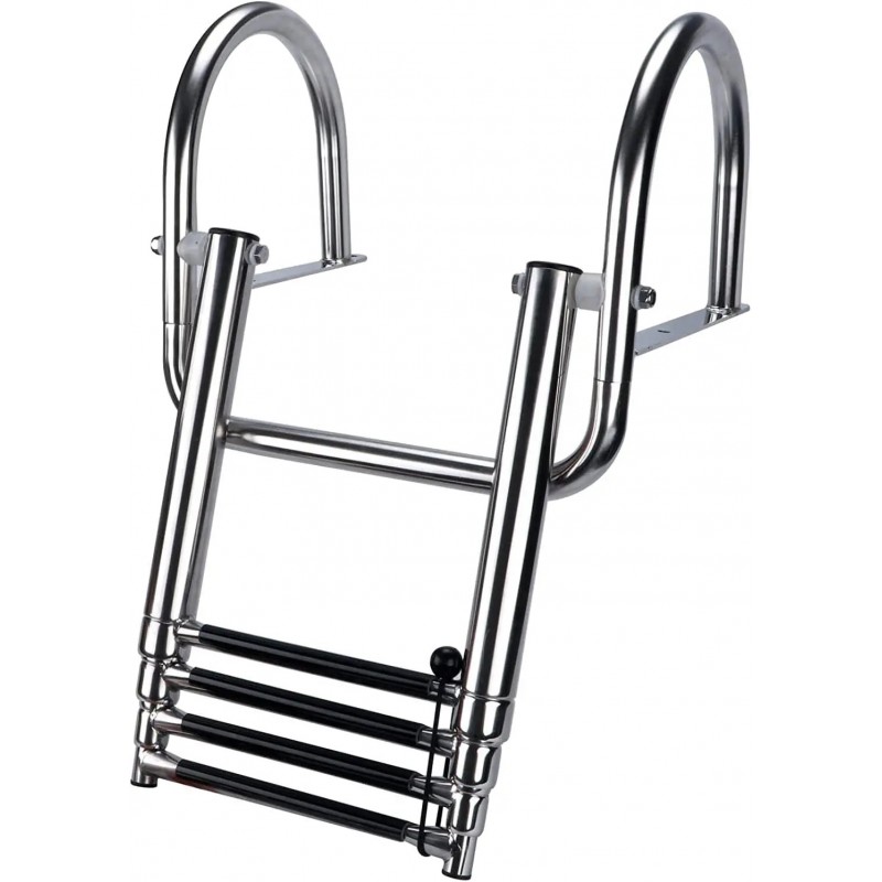 Scaletta in acciaio inox AISI 316 telescopica e ribaltabile con maniglioni. Applicazione sopra la plancetta
