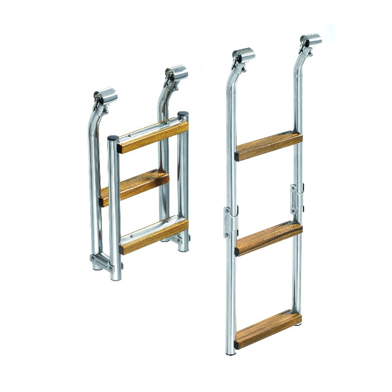 Scaletta in acciaio inox pieghevole con 3 gradini in legno marino, ideale come ricambio per art. 3030420/424/425/426.