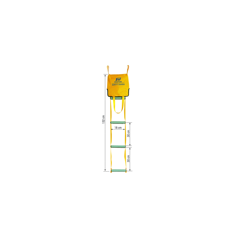 Scaletta biscaglina di emergenza a 5 scalini in poliestere giallo, concepita per migliorare la sicurezza a bordo, questa scaletta si presenta in un contenitore a due impugnature: una serve a fissarla sulla fiancata o sullo specchio di poppa, l’altra permette alla persona caduta in mare di sganciare l’apertura del contenitore, liberando così la scaletta che gli permetterà di salire a bordo.