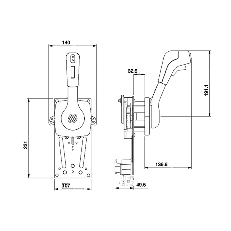 Monoleva ad azione doppia per il controllo del gas e dell’invertitore. Adatta a qualsiasi tipo d’imbarcazione con motore fuoribordo, entrobordo e gruppi poppieri. Rende più facile e sicura la guida evitando automaticamente l’innesto dell’invertitore se il gas non è al minimo. Può essere montate sulla paratia destra o sinistra, orizzontalmente o verticalmente. Provvista di frizione per registrare l’acceleratore, regolabile dall’esterno. Tirando in fuori la leva si disinnesta l’invertitore durante l’operazione di riscaldamento del motore. Mediante l’interruttore di sicurezza X12 (optional), l’avviamento del motore si ottiene solamente con l’invertitore in posizione di folle. Conforme alla normativa EN ISO 11547 in presenza dell’interruttore di sicurezza X12. Dotata di un dispositivo di blocco della leva nella posizione di folle che impedisce manovre accidentali. Completa di un’ interruttore per trim nell’impugnatura che permette la regolazione dell’alzo-piede nei motori fuoribordo e nei gruppi poppieri. Utilizzano tutti i cavi ad eccezione di C2-C8-C14 e Mach0 Mach14.Con i Cavi C5, C16 e MACH5 occorre il kit di adattamento K35 (art. 4242069).