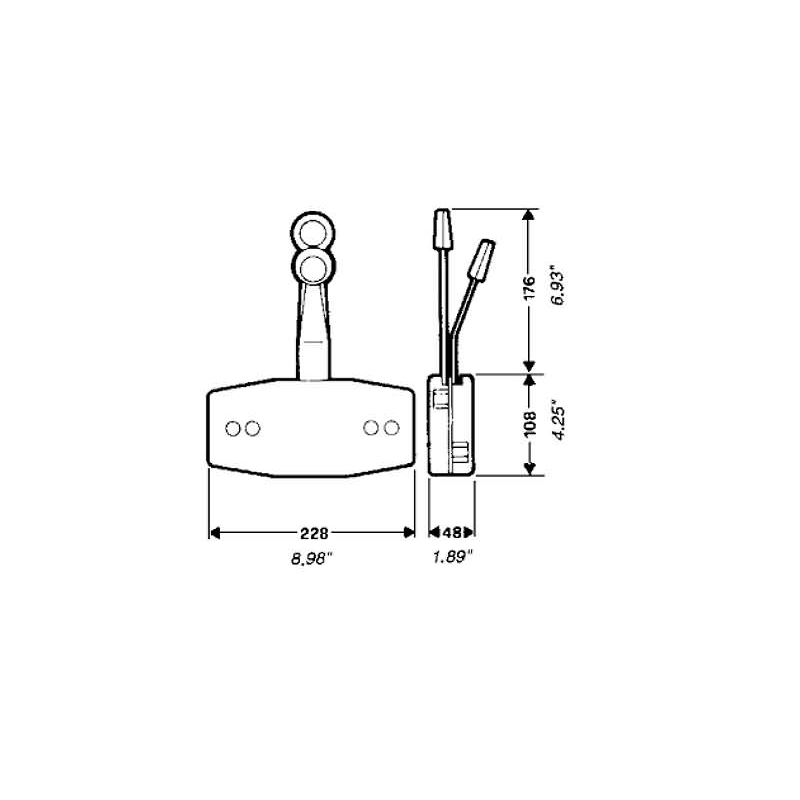 Scatola comando con applicazione a parete destra o sinistra, corpo in ABS e leve anticorodal. Adattabile su qualsiasi tipo di motore fuoribordo. Corredata dei sottoelencati kits, utilizza i seguenti cavi: C2 - C8 - Mach Zero - 33C con kit K25 per motori Yamaha - Suzuki - Chrysler- Mariner. C5 e Mach 5 per motori Mercury senza kit. C14 con kit K23 per motori OMC dal 1979. C16 per motori Mariner senza kit.