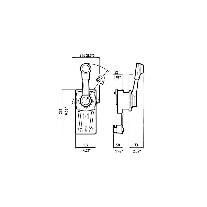Monoleva ad azione doppia per il controllo del gas e dell’invertitore con dispositivo di blocco della leva con impugnatura priva di sporgenze per l’uso su imbarcazioni a vela. Adatta a qualsiasi tipo d’imbarcazione con motore fuoribordo, entrobordo e gruppi poppieri provvisti d’invertitore idraulico. Può essere montata sulla paratia destra o sinistra, orizzontalmente o verticalmente. Il gruppo mozzo più leva è in alluminio pressofuso e verniciato. Provvista di frizione per registrare l’acceleratore, regolabile dall’esterno. Tirando in fuori la leva si disinnesta l’invertitore durante l’operazione di riscaldamento del motore. Mediante l’interruttore di sicurezza X12 (optional), l’avviamento del motore si ottiene solamente con l’invertitore in posizione di folle. Il modello B184 presenta nell’impugnatura un interruttore per trim che permette la regolazione dell’alzo piede nei motori fuoribordo e nei gruppi poppieri. Utilizza tutti i cavi per il comando motore C2-C8-C14 e Mach0-Mach14. Con i cavi C5-C16 e Mach 5 occorre il kit di adattamento K35 art. 4242069.