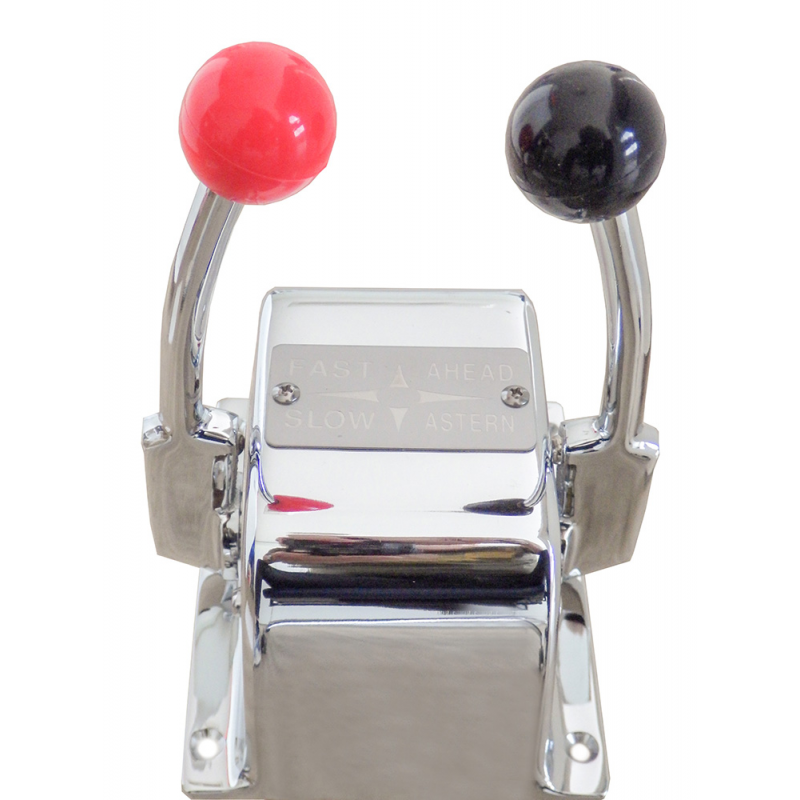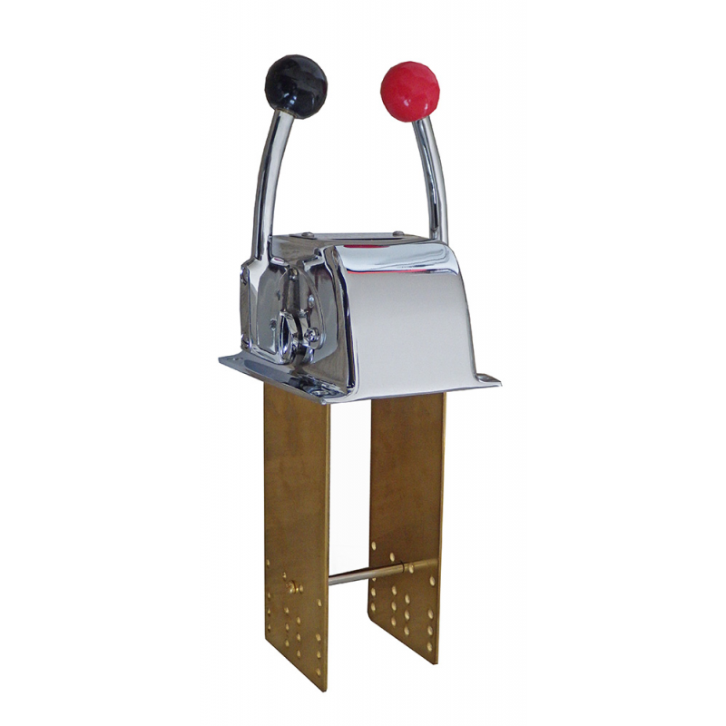 Scatola comandoleva doppia, in ottone cromato, gas+invertitore con scatto in posizione centrale per il controllo di un motore. Utilizza cavi C2 - C8 - Mach Zero - C22 - 33C.
