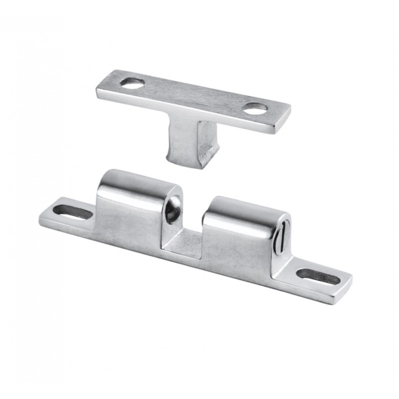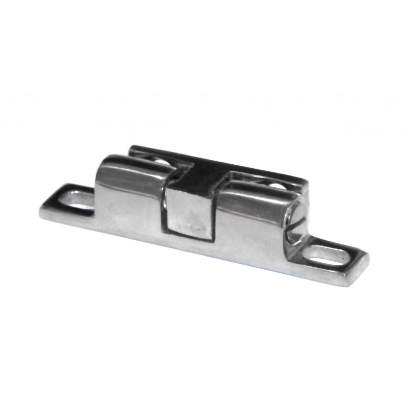 Scrocchetto a doppia sfera in acciaio inox AISI 316, fori delle viti ad asola per un perfetto allineamento.