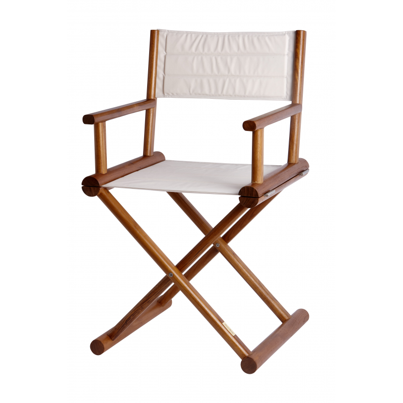Realizzate in teak, pieghevoli. Con tessuto impermeabile, anti UV.