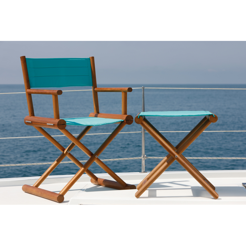 Realizzate in teak, pieghevoli. Con tessuto impermeabile, anti UV.