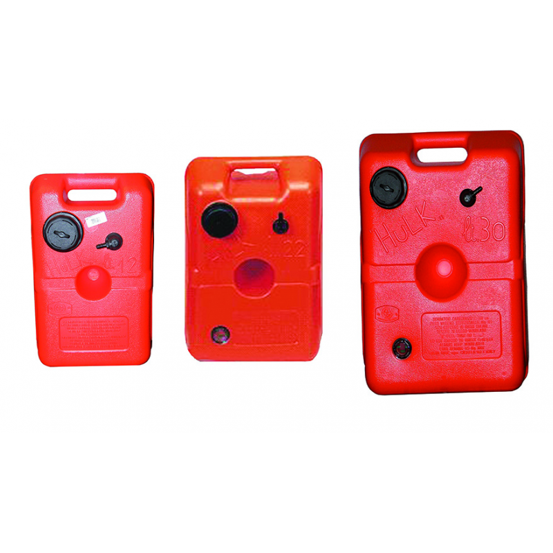 Serbatoio carburante Hulk costruito in Eltex di colore arancio con pipetta e portagomma di pescaggio. Rispondente alle norme R.I.Na./CE.