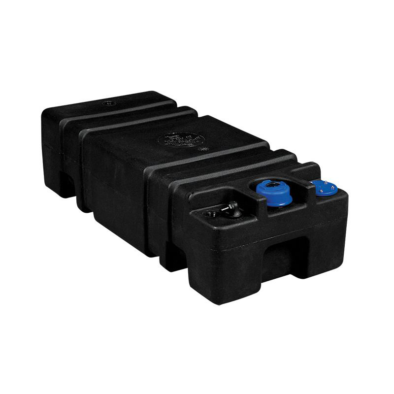 Serbatoio per carburante Modello Sogliola approvato Ri.Na., certificato CE N° 064596DG/009, costruito in polietilene, completo di portagomma di pescaggio e sfiato. Predisposto per il montaggio dei galleggianti VDO, VEGLIA, ecc.