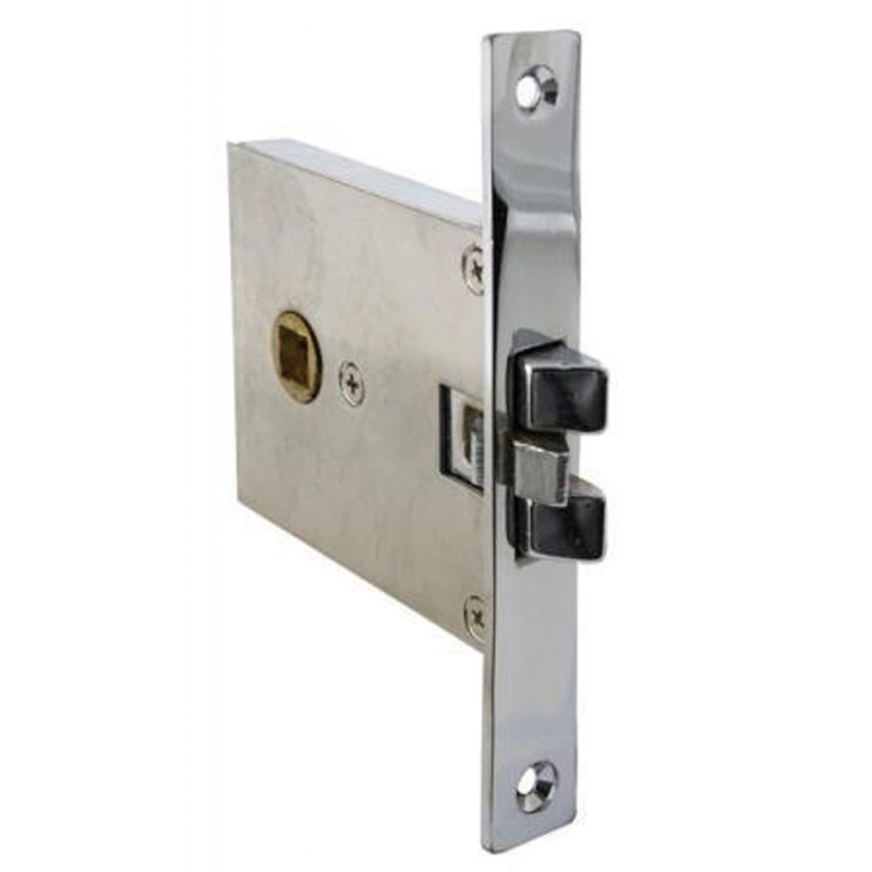 Serratura da incasso in ottone cromato a scrocco antivibrante.