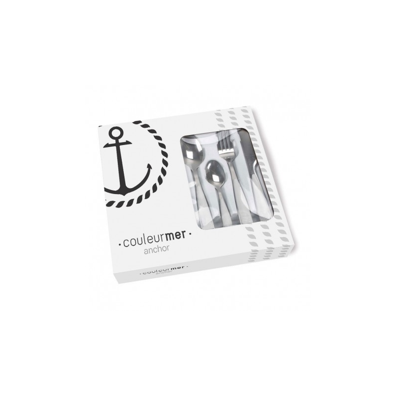 Set per 6 persone di posate in acciaio inox lavabili in lavastoviglie composto da n. 24 pezzi totali: n. 6 cucchiai, n. 6 forchette, n. 6 coltelli, n. 6 cucchiaini da caffé.
