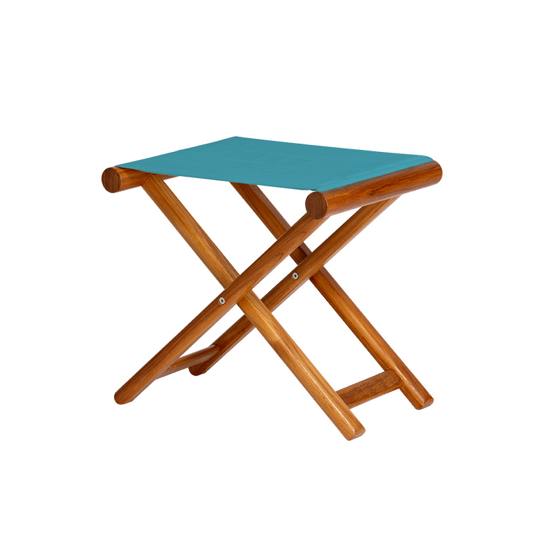 Sgabelli in teak, pieghevoli. Con tessuto impermeabile, anti UV.