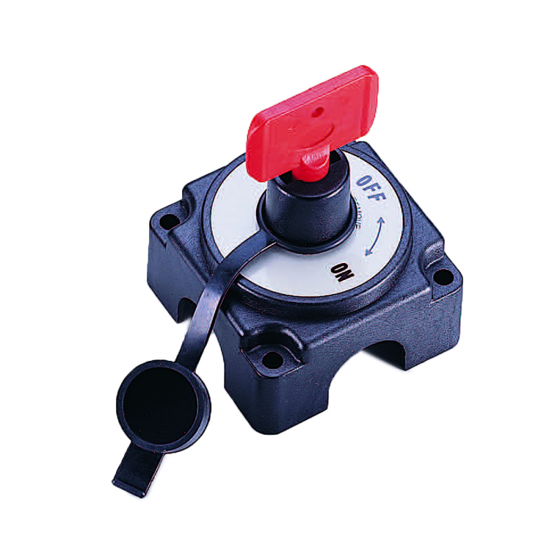 Stacca batteria da appoggio con chiave estraibile. Capacità 250 Amp. in continuo, 350 Amp. intermittente.