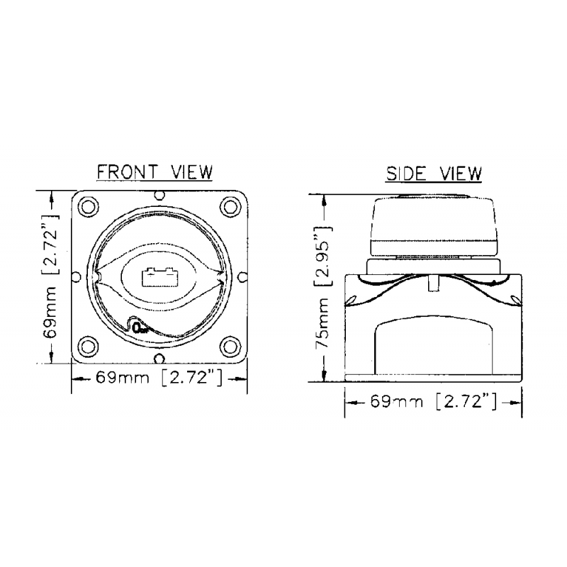 Stacca batteria BEP il sistema brevettato permette il montaggio modulare di più interruttori. La manopola non può essere rimossa nelle posizioni ON e OFF, ma solo ruotandola in senso antiorario di 45°. Montaggio in piano o ad incasso.