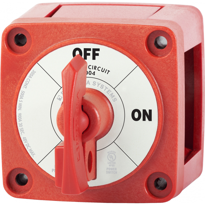 Staccabatteria ON-OFF realizzato in policarbonato rinforzato. Terminali di grandi dimensioni in rame argentato. Montaggio esterno o ad incasso.