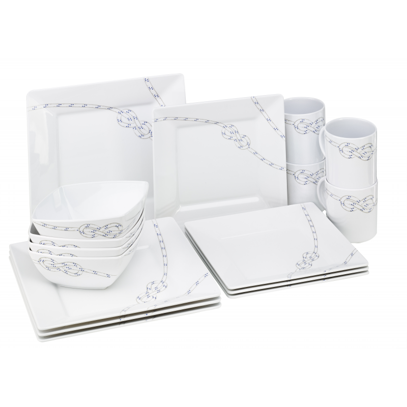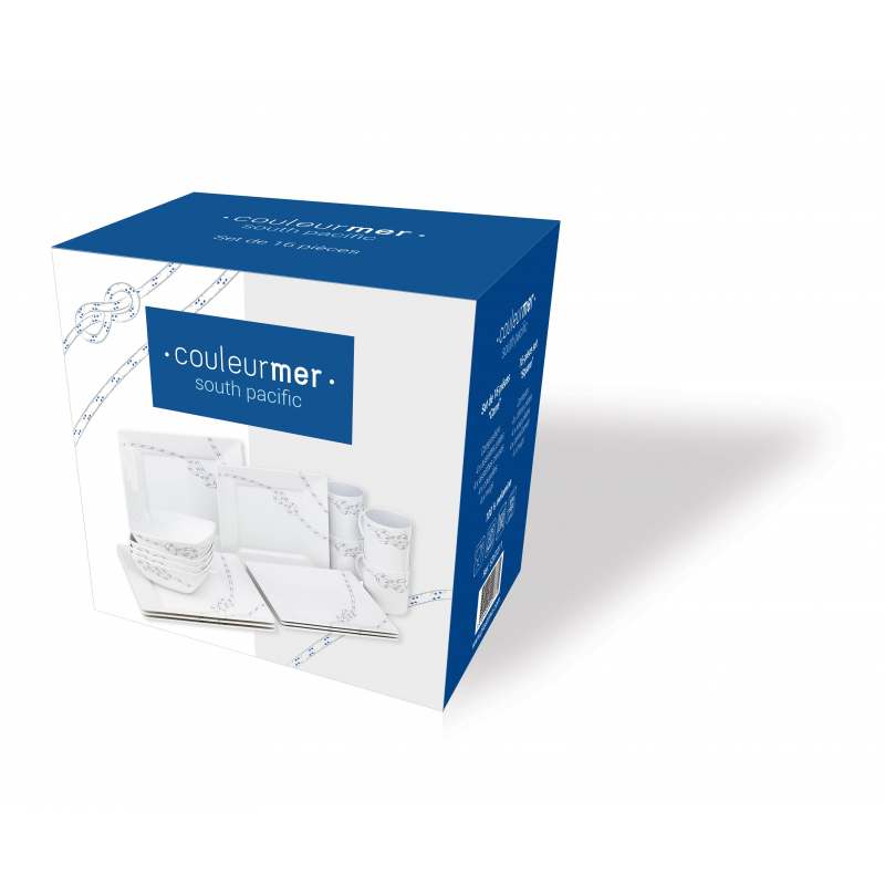 Stoviglie in melamina premium. La confezione include 16 articoli: 4 piatti piani, 4 piatti ciotole per cereali, 4 piatti da dessert e 4 mug.