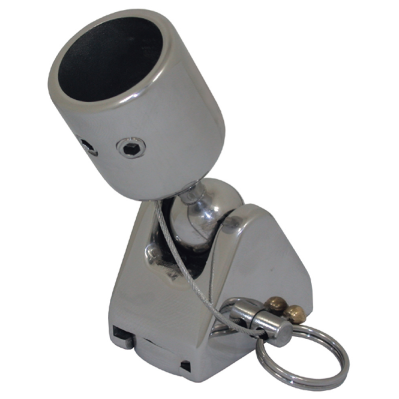 Supporto a cappuccio con perno sfilabile, fissaggio su piano, snodabile da 30° trasversali a 190° longitudinali.