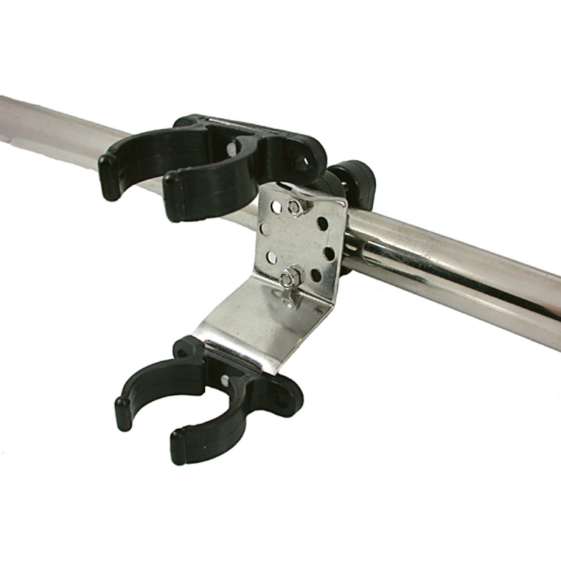 Supporto in acciaio inox per boette luminose art. 1040835. Installabile a parete o su tubo ø mm. 22/25 con apposito morsetto art. 1011001 incluso. Clip di ricambio art.1011002