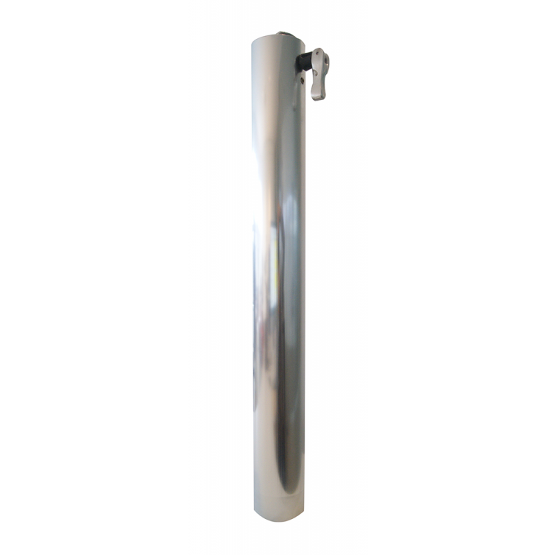 Supporto tavolo in alluminio anodizzato lucido, girevole a 360°, totalmente asportabile con blocco meccanico ad espansione nella base inferiore.