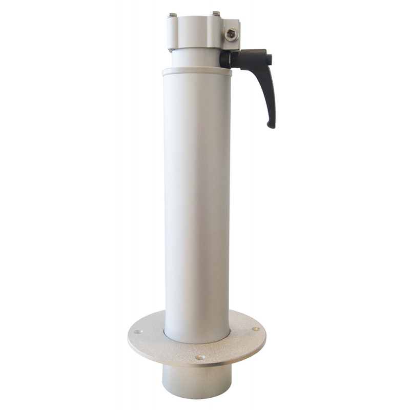 Supporto sedile o tavolo in lega anodizzata, telescopico e asportabile. Il tubo si stacca dalla base fissata al pagliolo.