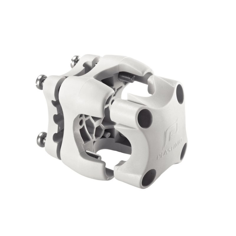 Morsetto in poliammide ad alta resistenza e acciaio inox. Montaggio semplice e veloce su qualsiasi tubo, senza forare. Montaggio verticale o orizzontale. Consegnato completo di morsetto, viti e supporto.