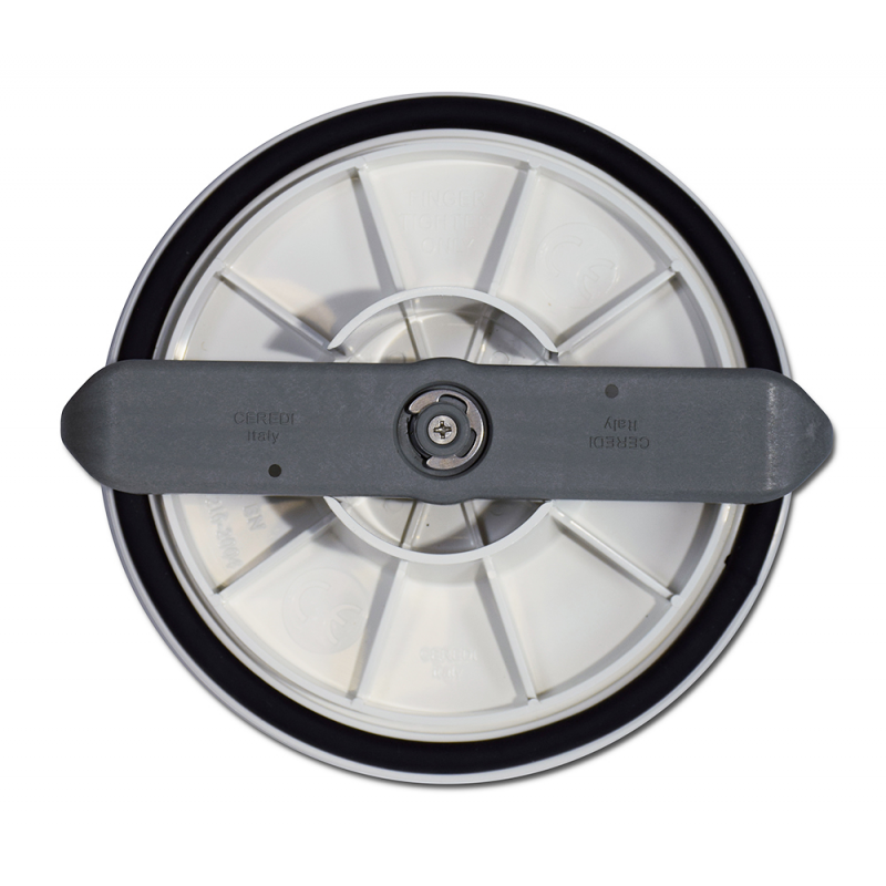 Tappo ispezione in ASA e nylon caricato vetro di colore bianco. Grazie alla sua guarnizione in materiale espanso a cellula chiusa, garantisce una perfetta tenuta stagna una volta ruotata la maniglia di chiusura. Calpestabile.
