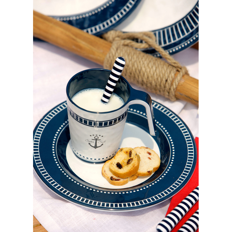 Servizio da tavola realizzato in melamina al 100%, BPA free. Sui toni del blu navy e bianco, il suo design martellato dà l’effetto della porcellana. Lavabili in lavastoviglie. E’ possibile riscaldare i cibi nel forno microonde. Bicchieri infrangibili abbinati, in MS BPA Free. Tovaglie, posate e altri accessori incoordinato.