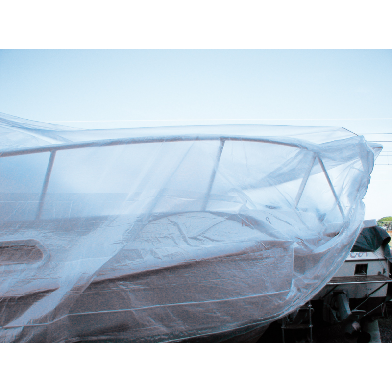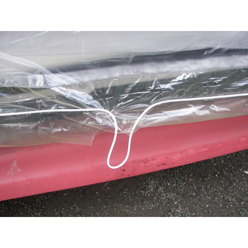 Copertura Nautica Indoor -Versione con elastico. Venduto a rotolo. La sua particolarità sono i 2 elastici applicati lateralmente su tutta la lunghezza, atti a facilitare ed a ridurre i tempi della messa in opera. Istruzioni di montaggio: 1. Srotolare il telo dalla poppa alla prua mantenendosi centrali all’imbarcazione lasciando un esubero di circa 50 cm per parte. 2. Applicare 2 fascette distanziate circa 30 cm e tagliare il telo. 3. Estrarre gli elastici ed annodarli. 4. Aprire il telo sull’imbarcazione. 5. Tirare l’elastico da una delle estremità ed annodarlo per mantenerlo in trazione. 6. Utilizzare se necessario gli appositi pre tagli con rinforzi per collegare l’elastico perimetrale trasversalmente.