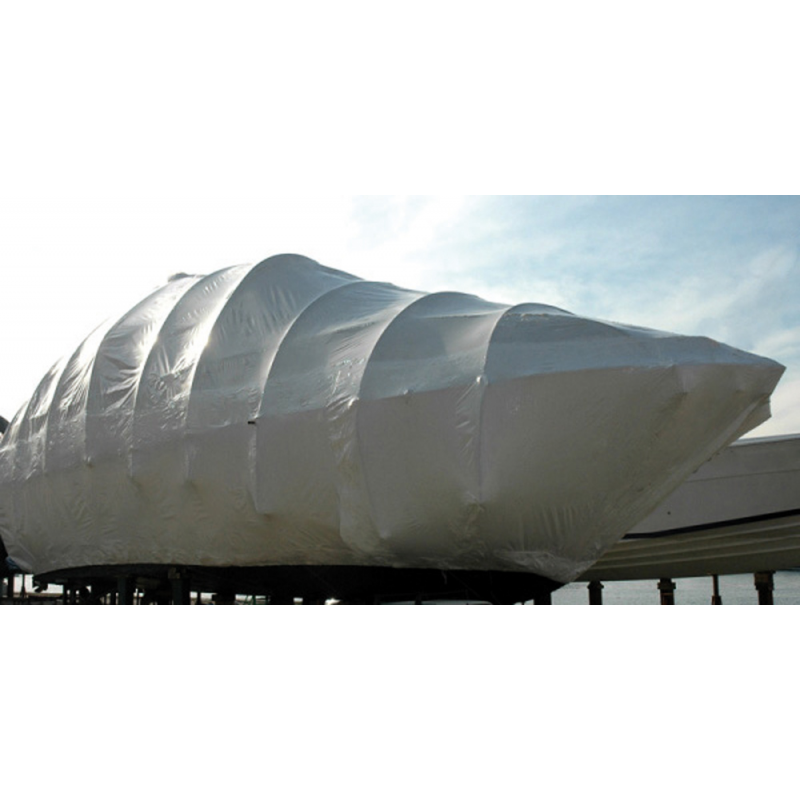 Telo termoretraibile di colore bianco prodotto in polietilene di prima scelta e con un additivo di colore bianco stabilizzato ai raggi ultravioletti (UV). Presenta il vantaggio di riflettere i raggi del sole e quindi favorisce una migliore conservazione ed il mantenimento di basse temperature. Ideale per il rimessaggio di ogni imbarcazione all’esterno. Utilizzabile anche per imballaggi di imbarcazioni in fase di spedizione sia via camion che via nave.