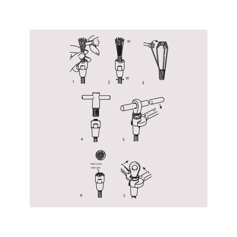 Tenditori in acciaio inox con terminale rapido, completo di due coni per il bloccaggio.