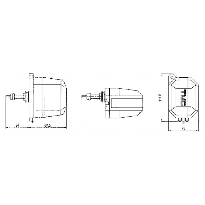 Tergicristallo carenato a tenuta stagna. Torna sempre al punto di partenza. Angolo di regolazione 110°, filettatura ø mm. 9, perno ø mm. 6, lung. totale mm. 55, lung. perno mm. 15. Da completare con 3838281 e 3838282.