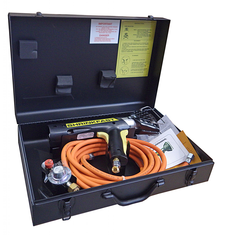 Termopistola SHRINKFAST 998 a gas propano per la termoretrazione del polietilene, rende facilissimo l’imballo e la protezione di barche, materiali e macchinari di qualsiasi dimensione e forma. Ergonomica, leggera, bilanciata, pratica, semplice e poco ingombrante può essere maneggiata da tutti. Nuovissimo bruciatore a doppia canalizzazione più efficiente ed affidabile. Dispositivo di accensione e spegnimento con un unico movimento. Certificata CE n. 845BS- 0036 e UL. Completa di valigetta metallica, 8 mt. di tubo, riduttore di pressione con regolatore di potenza, chiave di collegamento per il tubo e manuale di istruzioni e manutenzione.