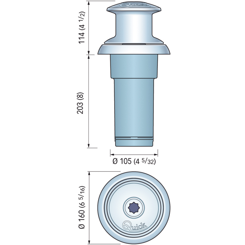 Verricelli da tonneggio, base e campana in bronzo cromato, motore verticale stagno con riduttore epicicloidale.