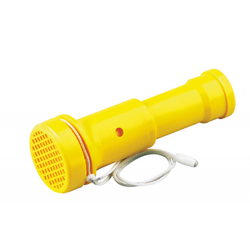 La semplicità di un corno da nebbia e la potenza di una tromba a gas: più di 100 dB senza sforzo. Funziona per vibrazione di una sottile membrana plastica, sostituibile con qualsiasi pellicola plastica sottile. Galleggiante.