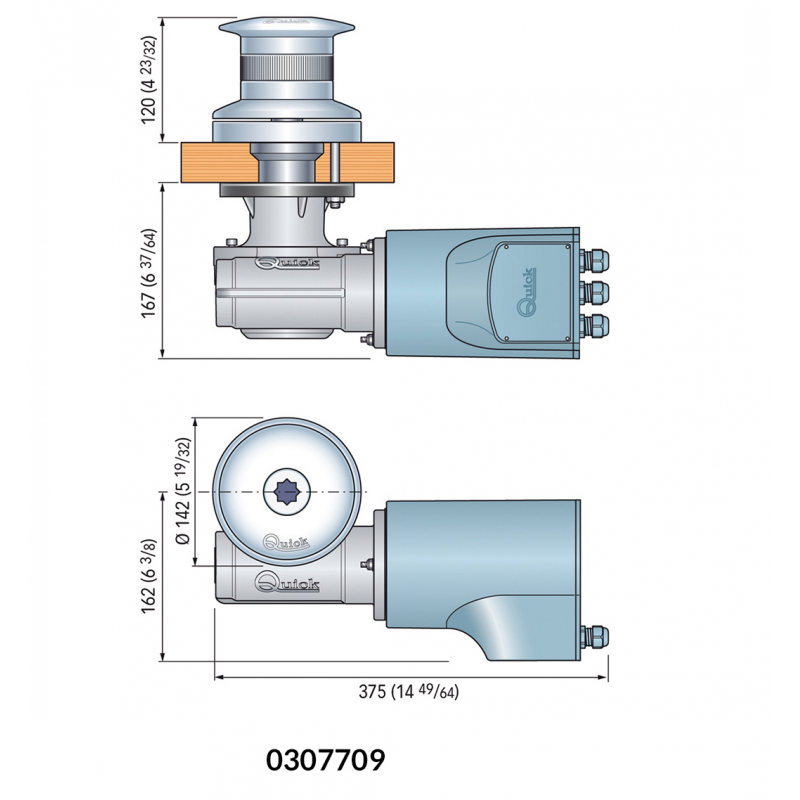 Verricelli da tonneggio, base e campana in acciaio inox Aisi 316, motore stagno IP67. Riduttore in alluminio anodizzato.