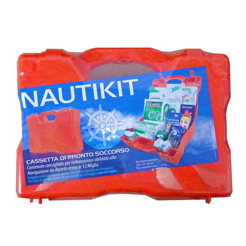 Valigetta pronto soccorso contenitore in plastica colore arancio a tenuta stagna per Natanti fino a 10 mt di lunghezza e navigazione entro le 12 miglia dalla costa.