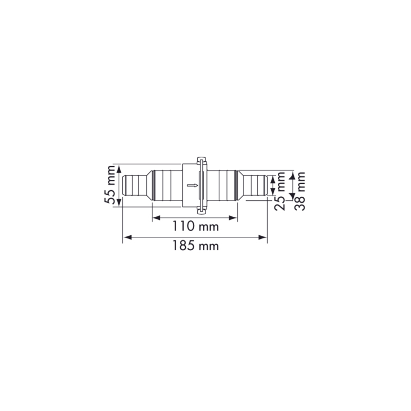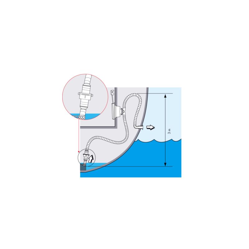 Valvola di non ritorno in plastica, permette di trattenere l’acqua nel tubo per agevolare l’adescamento ed evitare il riflusso dell’acqua nella sentina.